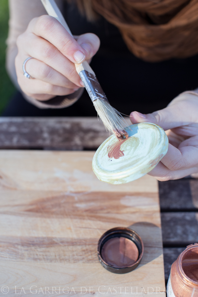 Primer de tot assegureu-vos que tant el pot com la tapa estan ben nets i secs. Normalment aquests pots venen amb una tapa de color llautó bastant lletja així que us donem dues alternatives: