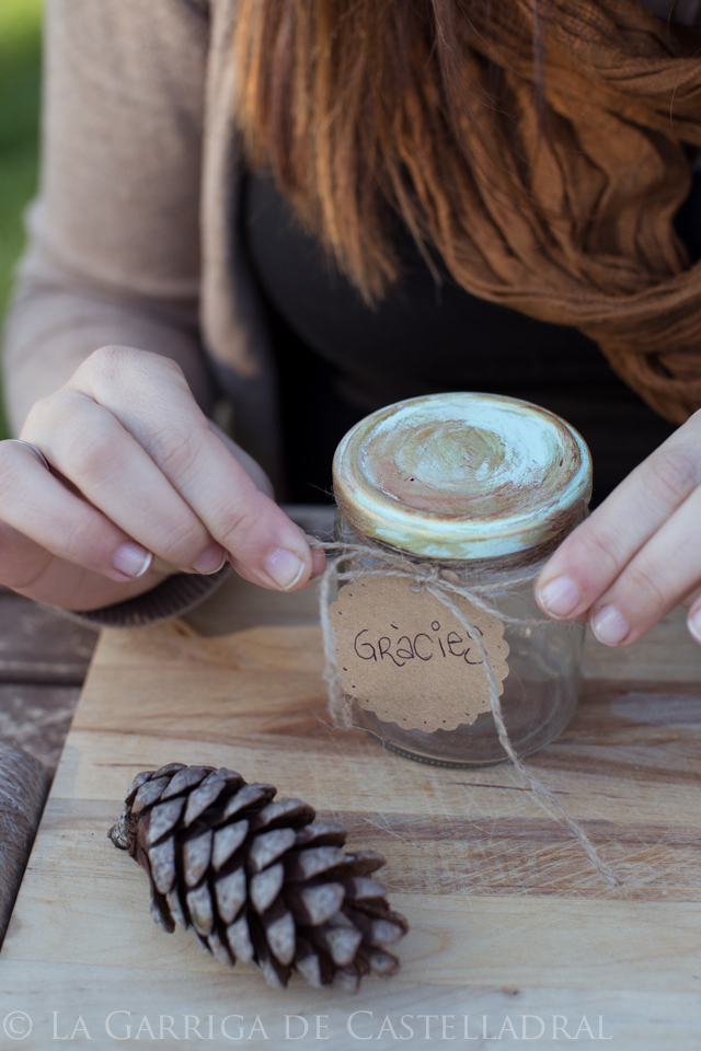 Sí, sí, a primera vista pot semblar que és una cosa molt senzilla però pot resultar del tot personalitzat si hi doneu un parell de voltes. Es tracta de decorar pots (els típics de confitures i melmelades) i a dins guardar-hi el detall pels vostres convidats.