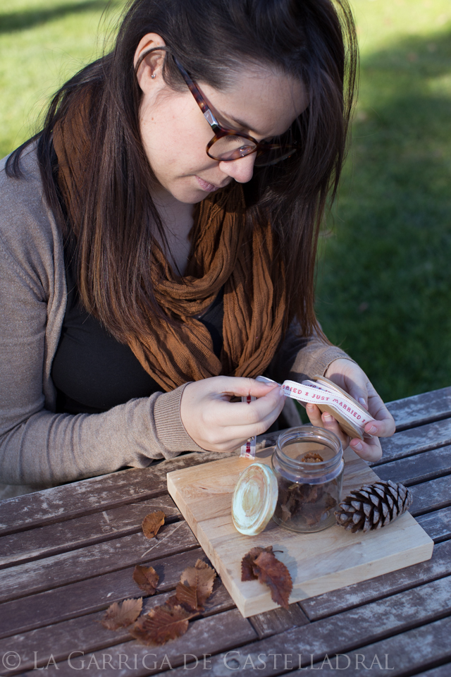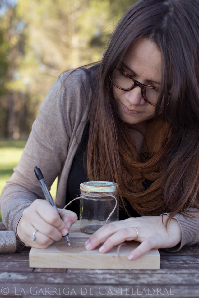 Un cop tingueu la tapa decorada només fa falta posar-hi una una etiqueta amb el missatge que mes us agradi. Podeu posar-hi els vostres noms, el logo del casament, un «gràcies» o alguna frase o cita divertida que cridi l’atenció dels vostres convidats.